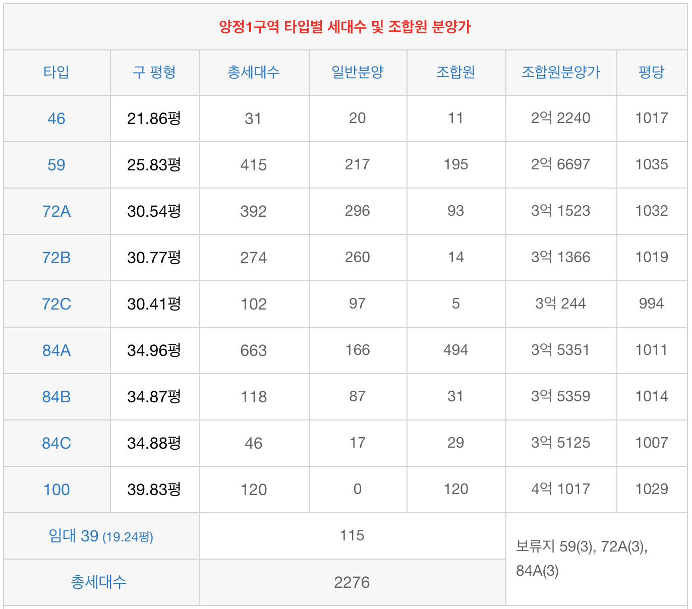 2) 조합원평균분양가 |