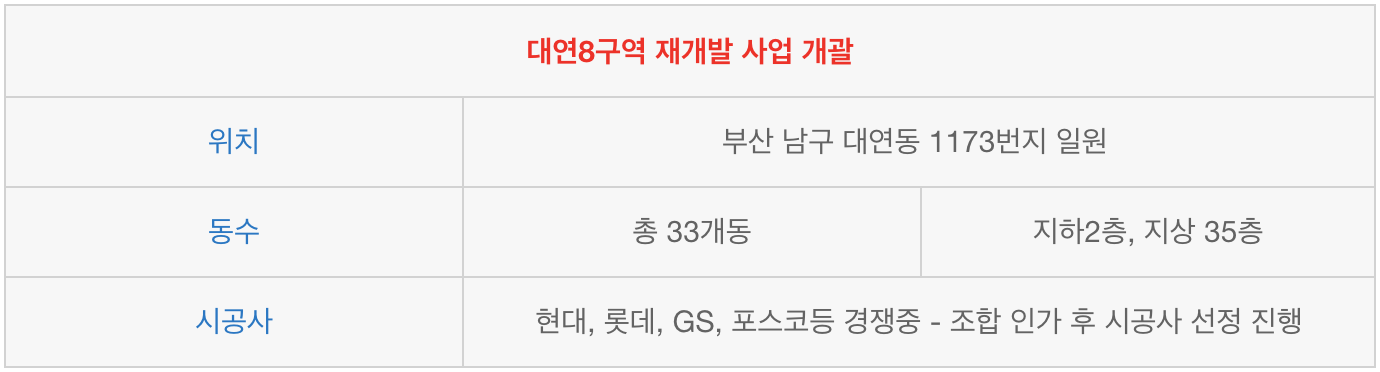 대연8구역 재개발 진행 상태는