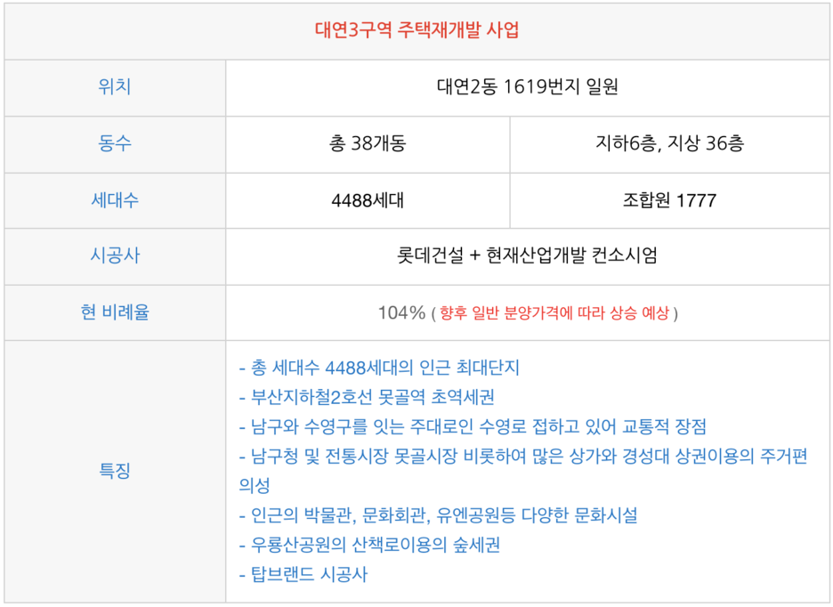 대연3구역 재개발에 관심이 있으신 분들은 연락주시면 자세히 설명 드리겠습니다.