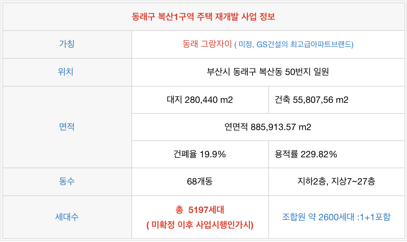 복산1구역 재개발 강추물건과 동래구 분양가 체크