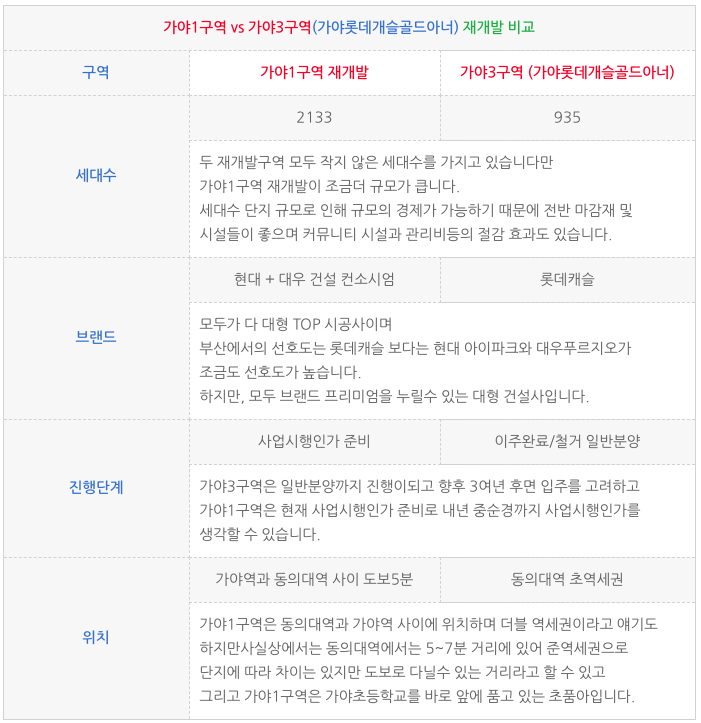 가야1구역과 가야3구역을 잠시 비교해보고 물건소개도 드리겠습니다.