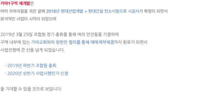 가야1구역 재개발에 관심이 있으신 분들은 연락주시면 자세히 설명 드리도록 하곘습니다.