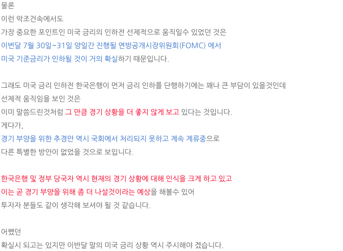 금리인하와 하반기 경기 동향에대해서는 제가 얼마전 포스팅한 아래 글을 참조 부탁드립니다.