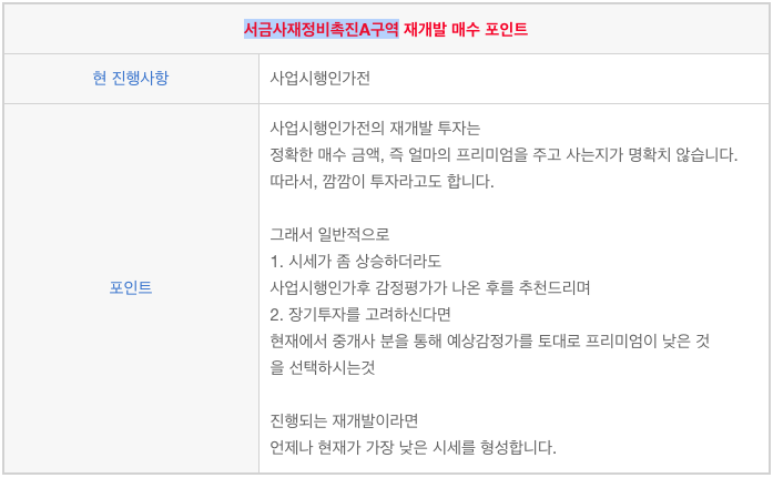 서금사 재정비 촉진A구역 재개발 소액 물건