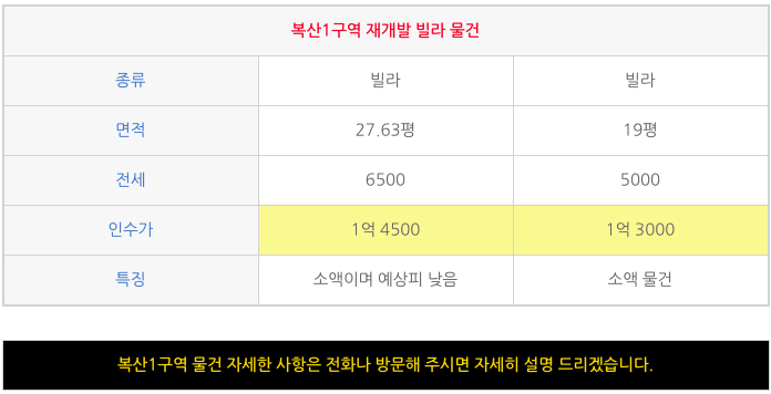 최근 복산1구역은 예상프리미엄이 낮은 물건, 또는 소액 물건들 위주로