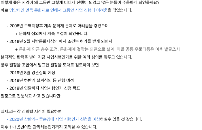 사업시행인가 신청까지 진행이 된다면 그러한 의구심들에 대한 구름이 걷히게 되어서