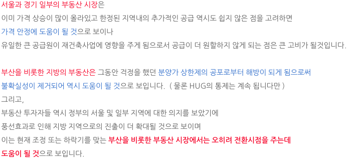 현재 서울과 일부 지역을 제외한 부산을 비롯한 대다수 부동산 시장이 악화된 것을 고려하여