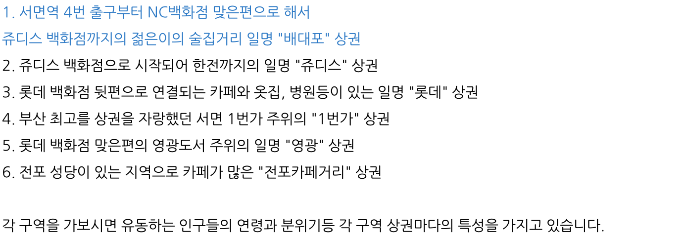 #서면상권 은 크게 6가지로 나눌수 있습니다.