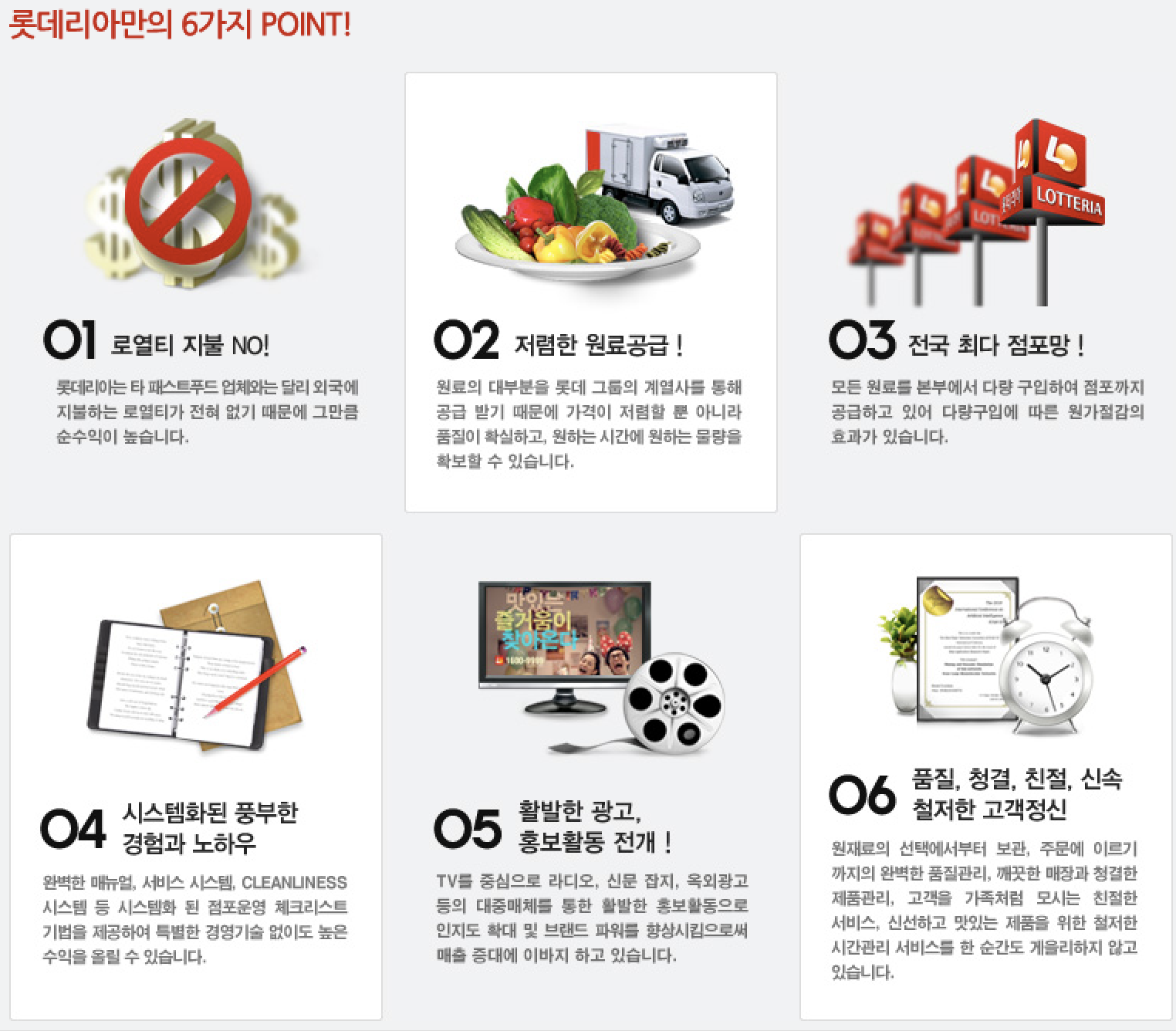 또한, 롯데리아는 본점에 재료비를 제외하고 로열티가 따로 없는 프랜차이즈 입니다.