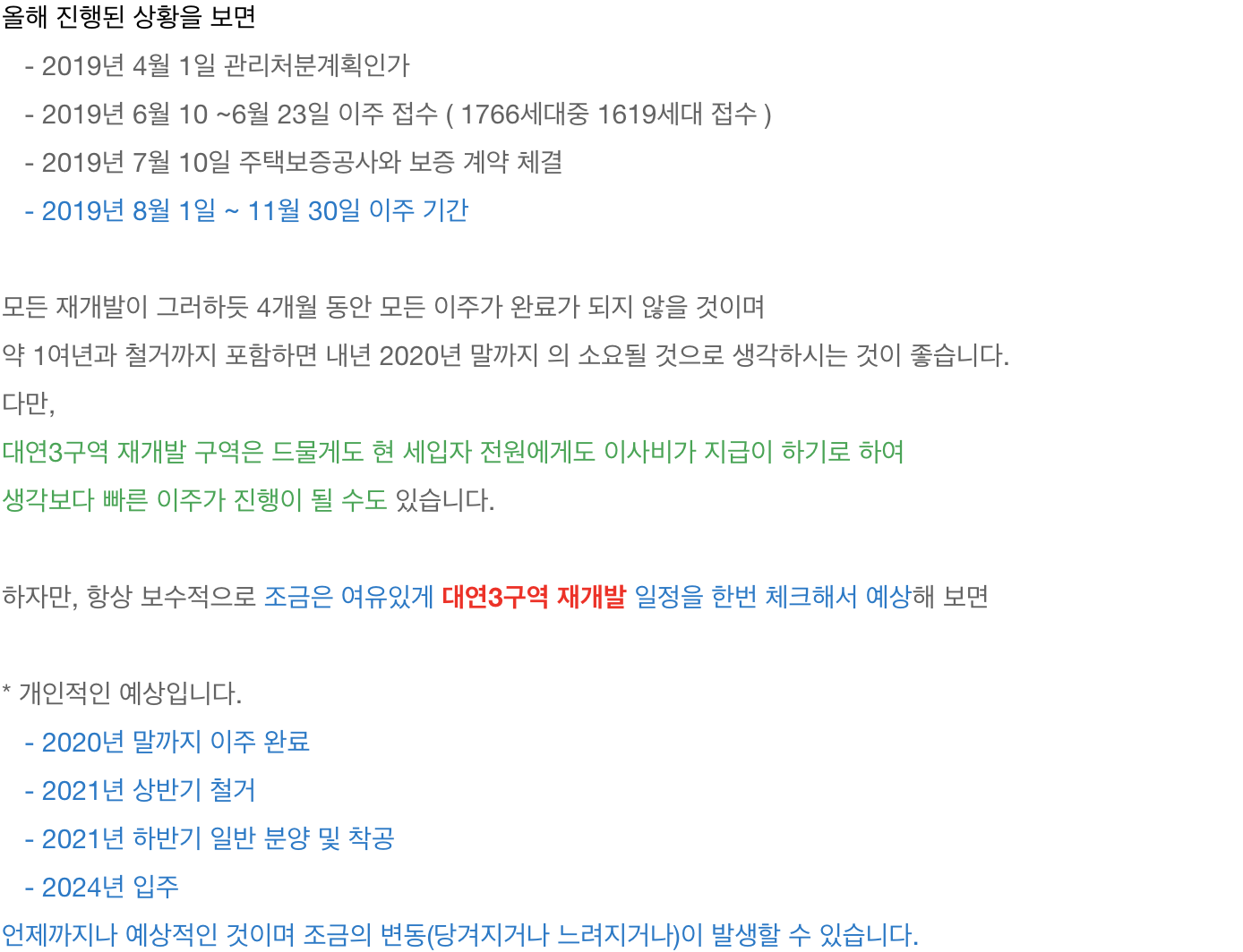 2. 대연3구역 재개발의 현재 진행 사항과 향후 진행 예상입니다.
