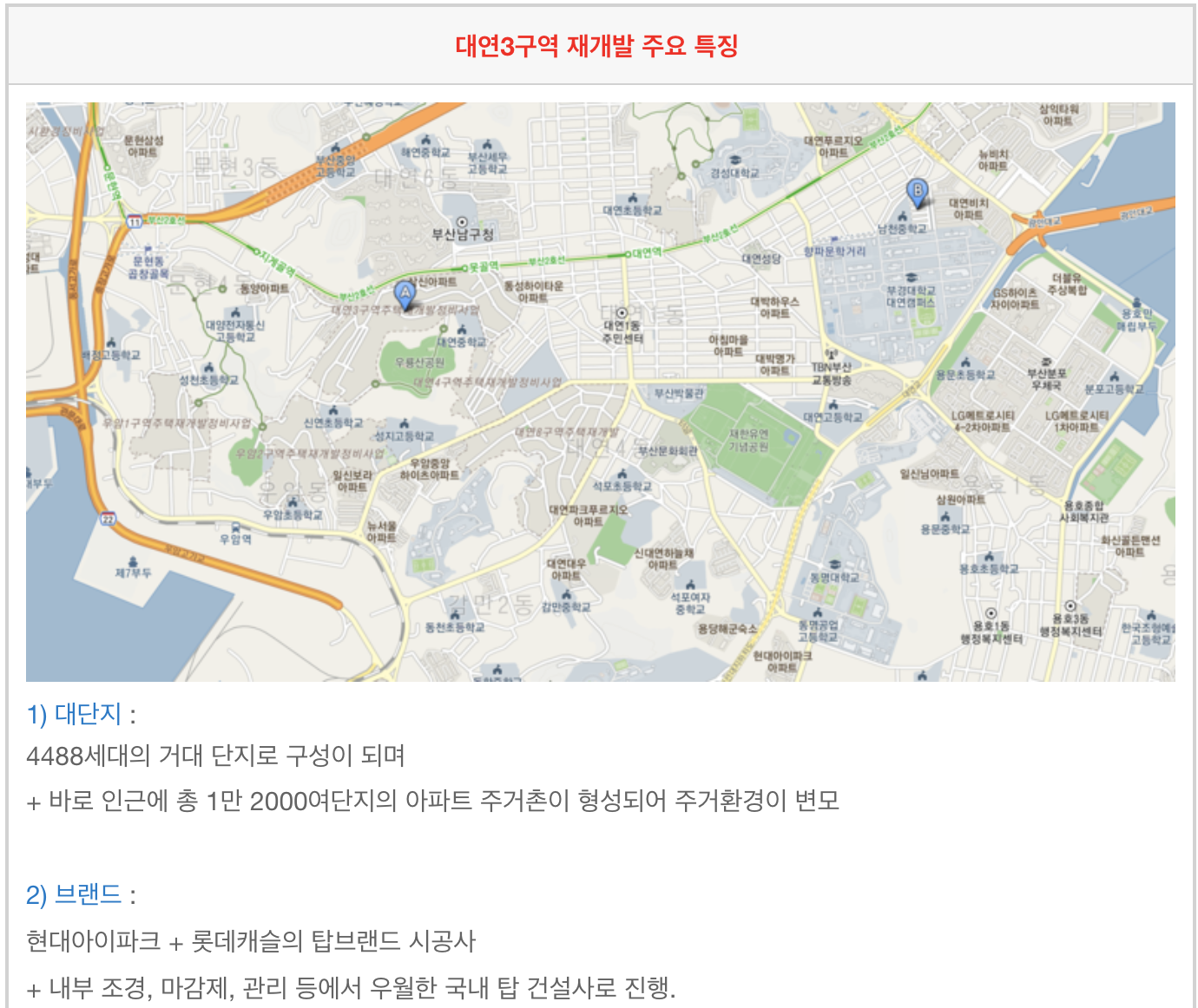 3. 대연3구역 재개발 간략한 특징 입니다.