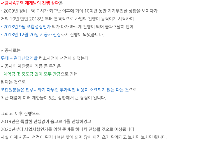 오늘 소개해 드리고 있는 서금사A구역 재개발 역시 위의 장단점을 동일하게 가지고 있습니다.
