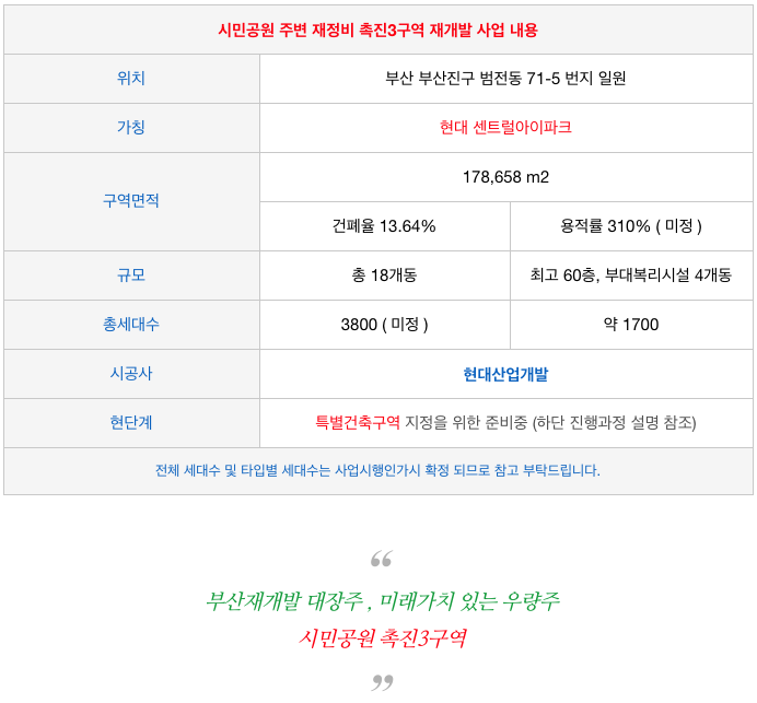 시민공원 촉진3구역 재개발 공동주택 물건 |