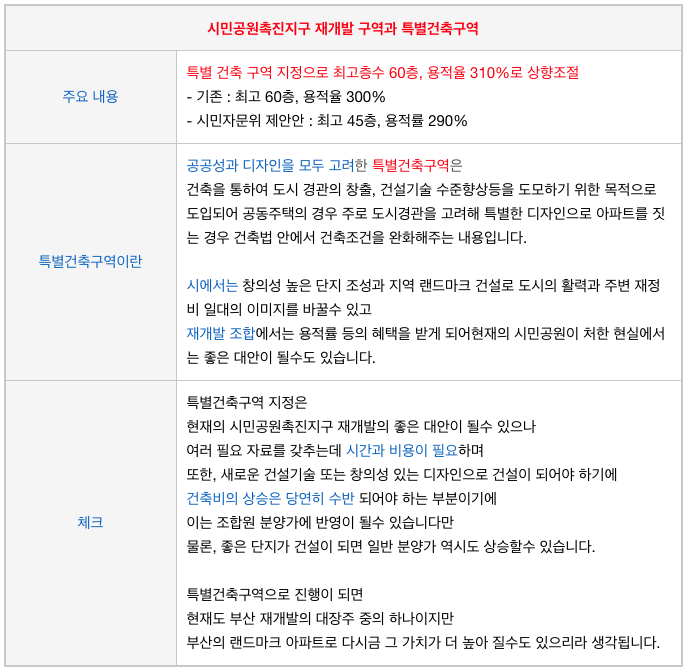 게다가 부산의 아파트 재개발 구역중에 처음으로특별건축구역 지정얘기가 나왔던 곳으로