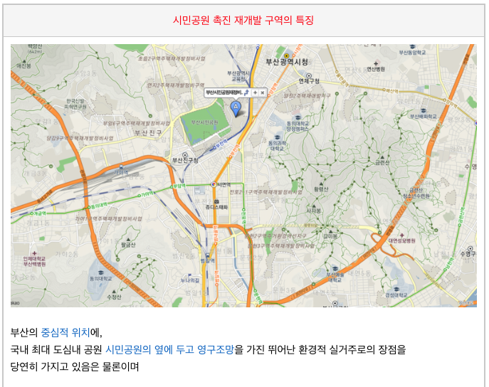 시민공원 촉진 재개발 구역의 특징을 간력히 소개해 드립니다.