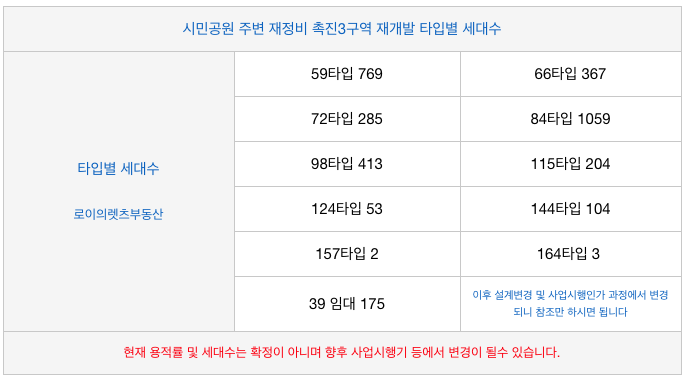 시민공원 촉진3구역 재개발의각 타입별 세대수로