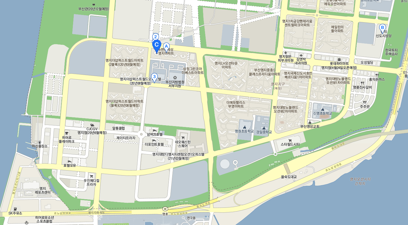 하지만, 명지 법원 바로 인근에는 쭉 한번 둘러보시면 사실 임대할 상가 물건 자체가 별로 없습니다.