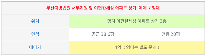 명지동 부산지방법원 인근 상가 매매 /임대 ( 이편한세상명지아파트 )