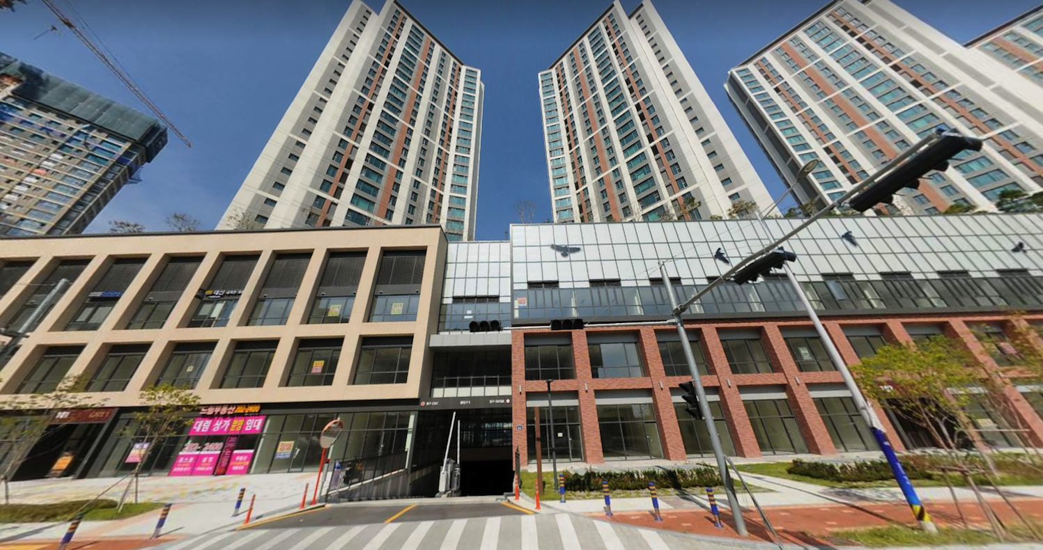 법원의 뒷문에 바로 위치해 있는 이이편한세상 명지아파트의 구분 상가에