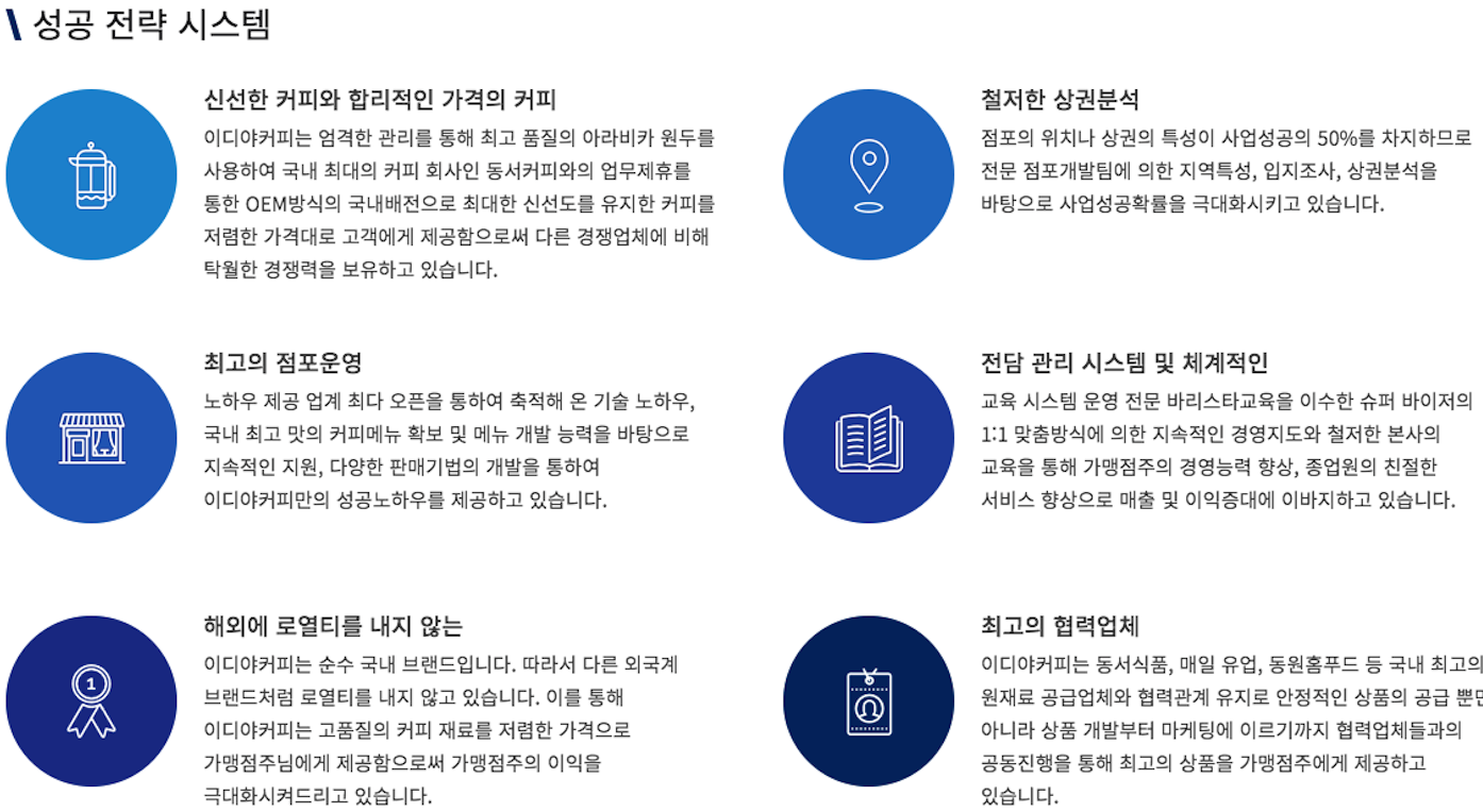 폐점률이 대단히 높습니다만 이디아 커피는 업계 최저인 1%대의 폐점율을 유지하고 있습니다.