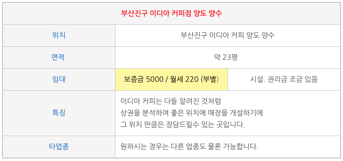 부산진구 이디야커피 양도 양수