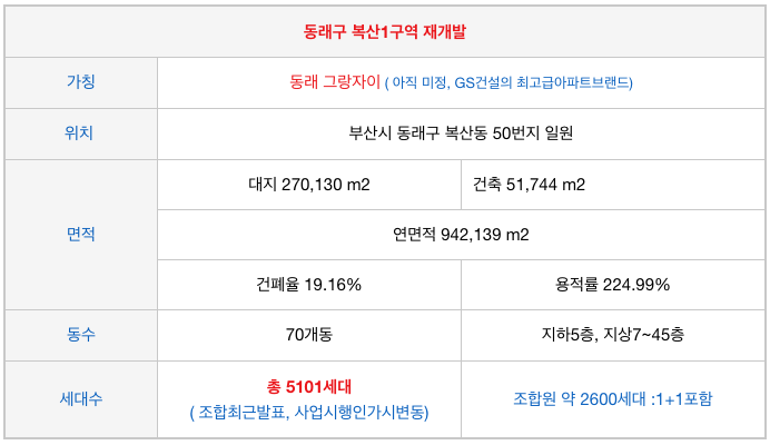 복산1구역 재개발의 특징을 간략히 정리했습니다.