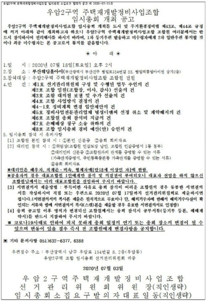 우암2구역 재개발은 지난 주말(7월 18일)에 임시총회를 통해서 특별한 시간을 보내었습니다.