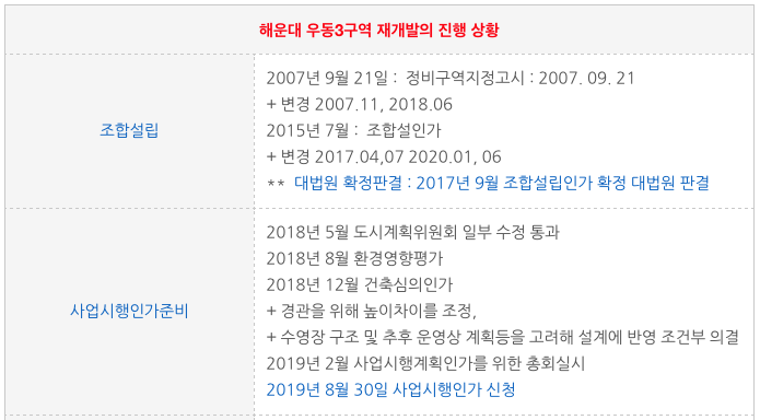 해운대 우동3구역 재개발의 그간 진행 사항을 간략히 정리하였습니다.