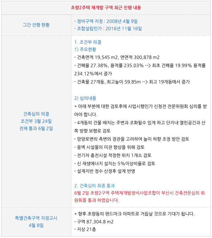 초량2구역 주택재개발의 진행상황 입니다.