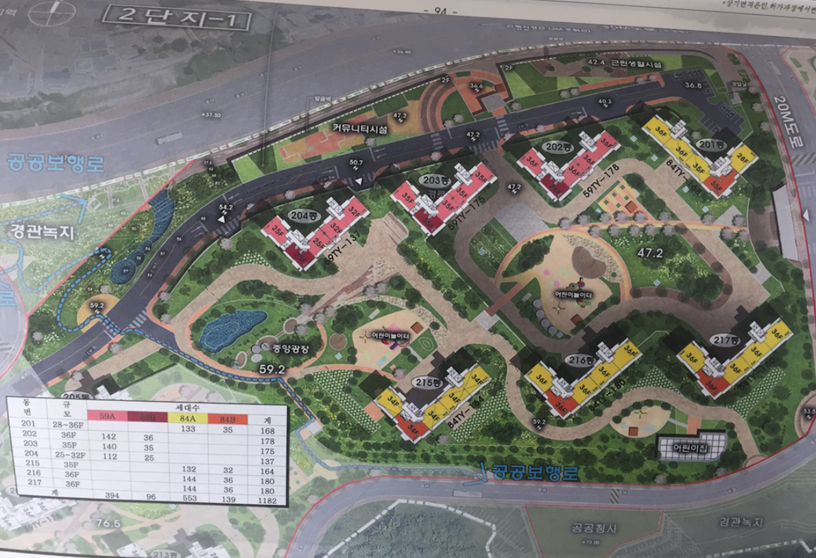 1단지는 지하철 가까이에 배치 되어 있고 2단지으 단지 안쪽과 약간 높은지대에 위치해 있습니다.