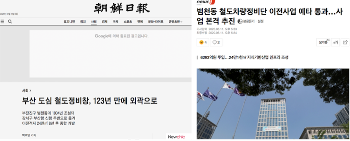 부산 경제의 핵심적 요소 였던경부선 철로와 범전철도차량기지창이 오히려