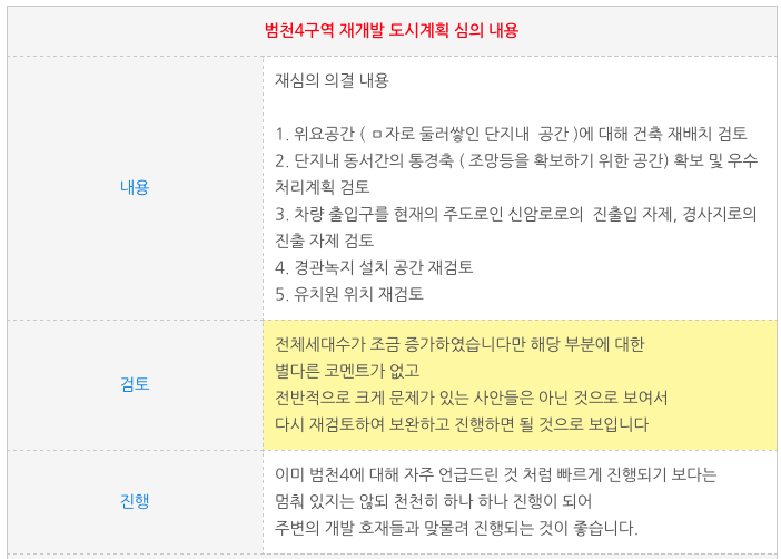 범천4구역 재개발은 재심의 의결이 되어서 다시 한번 수정 보완하여 심의를 진행하게 되었습니다.