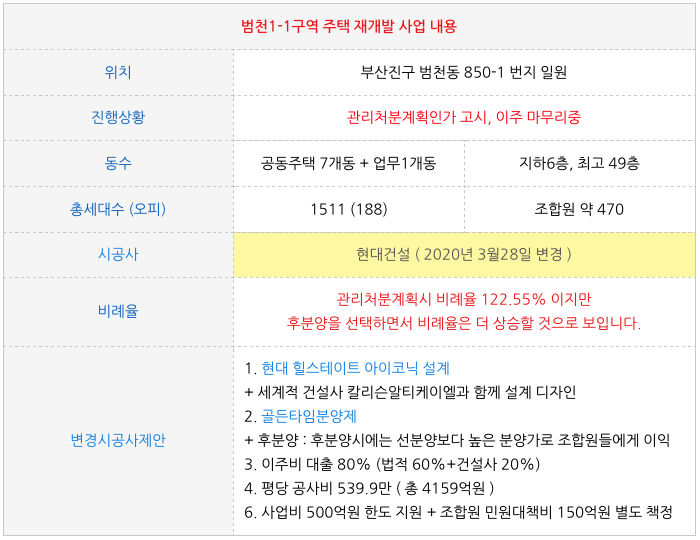 관리처분이후라 거의 확정적이긴 하지만 새로운 시공사로 변경이 되면서 향후 조금 변동이 있을수도 있으니