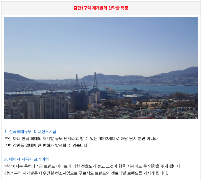 감만1구역 재개발에 대해 궁금하신 부분은 연락주시면 자세히 설명 드리겠습니다.
