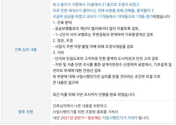 내년 상반기경~중순 경에는 사업시행계획인가가 예상되고 있는