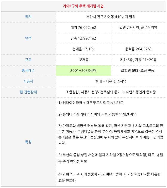 가야1구역 재개발 물건 소개 |