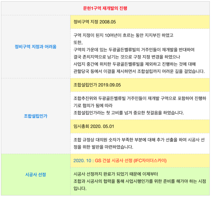 아직 초기 단계로 현재까지 시공사 선정외 진행된 부분은 없지만 조합 설립까지 어려움이 있었습니다.