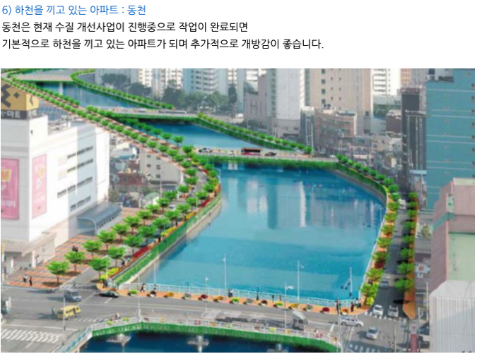 바로 옆으로 동천강을 끼고 있어서 전 세대의 개방감이 좋으며
