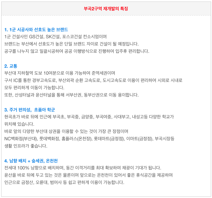 - 인근의 부산대 상권의 편리함과 현곡초등학교를 옆에둔 초품아이기도 하며