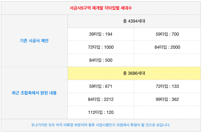 84타입이상을 대폭 늘린 최근 조합측에서 밝인 제안한 으로 향후 사업시행인가 과정에서 확정이 될 것으로 보입니다.