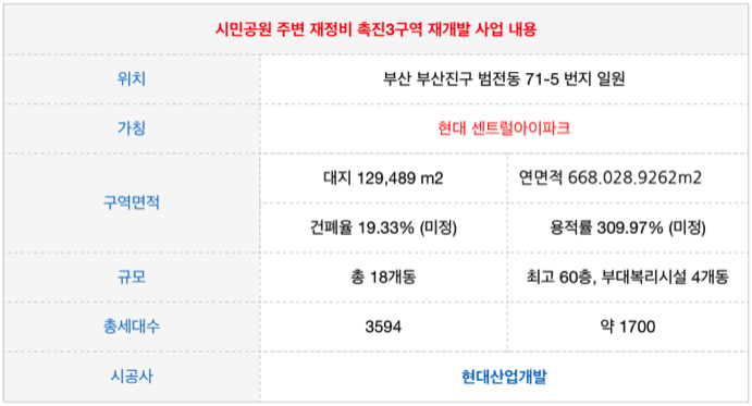 시민공원 재개발에서 3500여세대가 가장 큰 대단지로 부산 시민공원의 동쪽에 위치하여