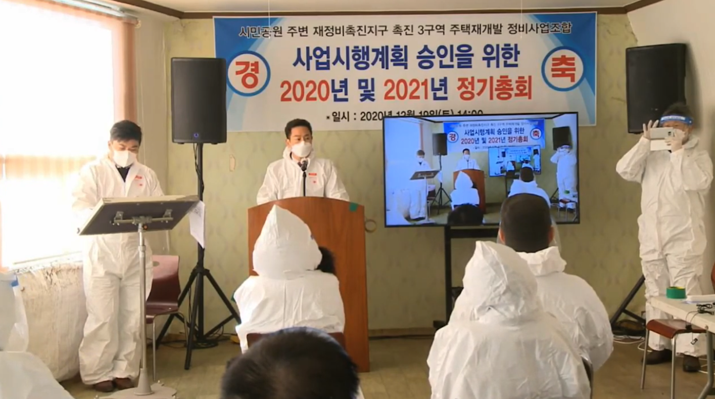지난 12월 19일 코로나로 어려운 상황속에서도 사업시행인가를 위한 총회를 개최하였고 성원을 달성하여
