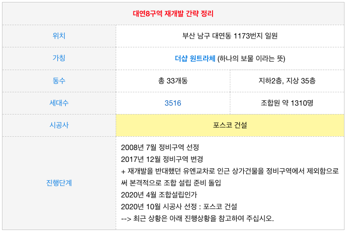 대연8구역 재개발의 진행상황 / 타입별 세대수 등 추가적인 정보는 아래 포스팅을 참조 부탁드립니다.