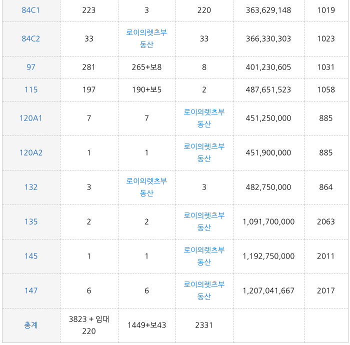 래미안포레스티지 84A, 115타입등