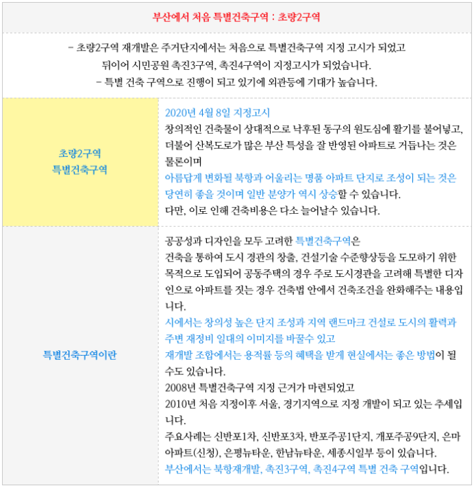 부산의 첫번째 특별건축구역으로 지정이 되어 향후 아파트의 외관등이 더욱 기대가 되는 곳으로
