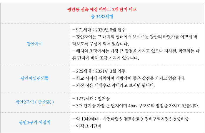 광안3구역까지 진행이 되면 4개단지 모두 3600여세대의 새로운 신축 대단지 주거 타운이 형성되게 되어