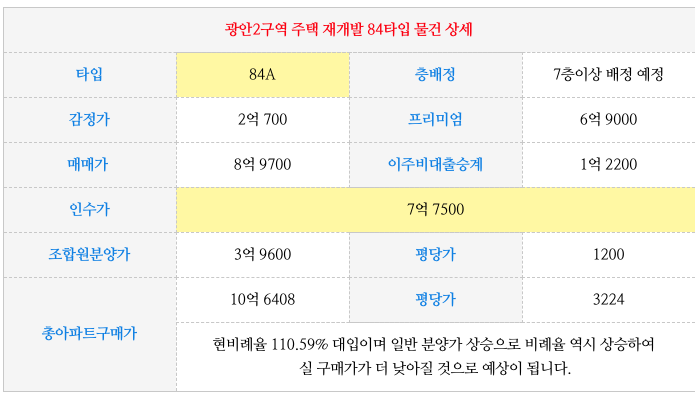 수영구 광안동 " 광안SK - 광안2구역 재개발 " 84A 물건