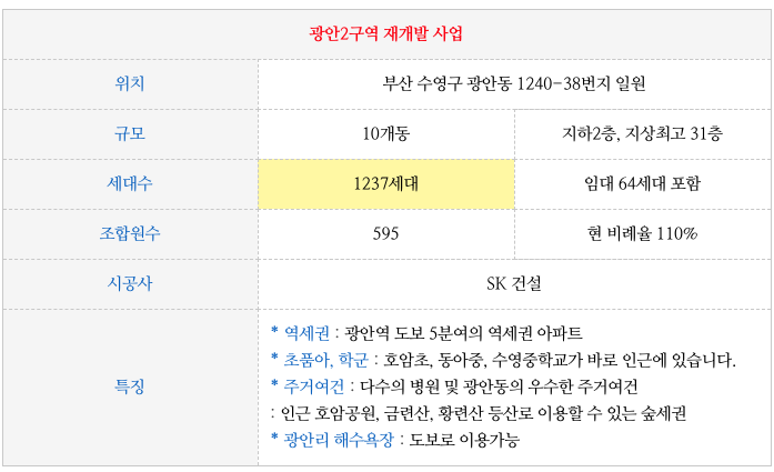 광안2구역 재개발에 관심이 있으신 분들은 연락주시면 자세히 설명 드리겠습니다.