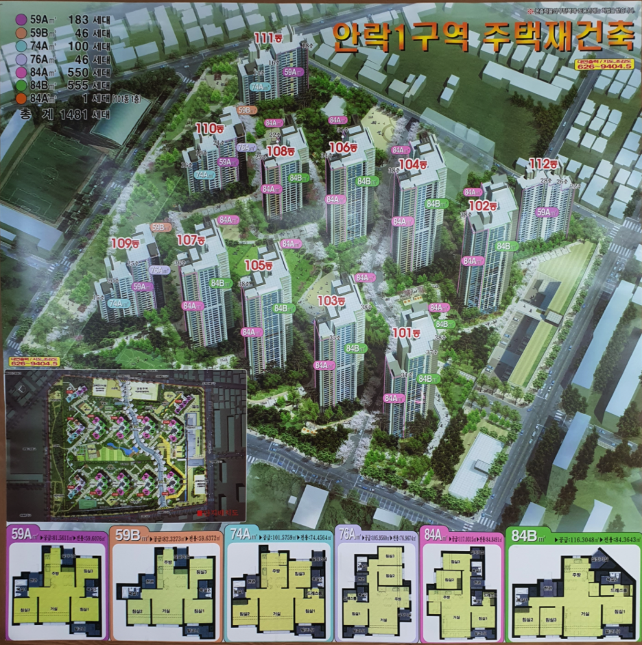 동래구 안락1구역 재건축 59A 물건 접수되어 소개해 드립니다..