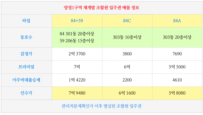 양정1구역 재개발 조합원 분양가와 타입별 세대수 등은 아래 페이지 참고 부탁드립니다.